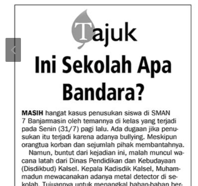 sendiri. Salah satunya kasus penikaman oleh siswa SMAN 7 Banjarmasin yang terjadi pada Senin, 31 Juli 2023.